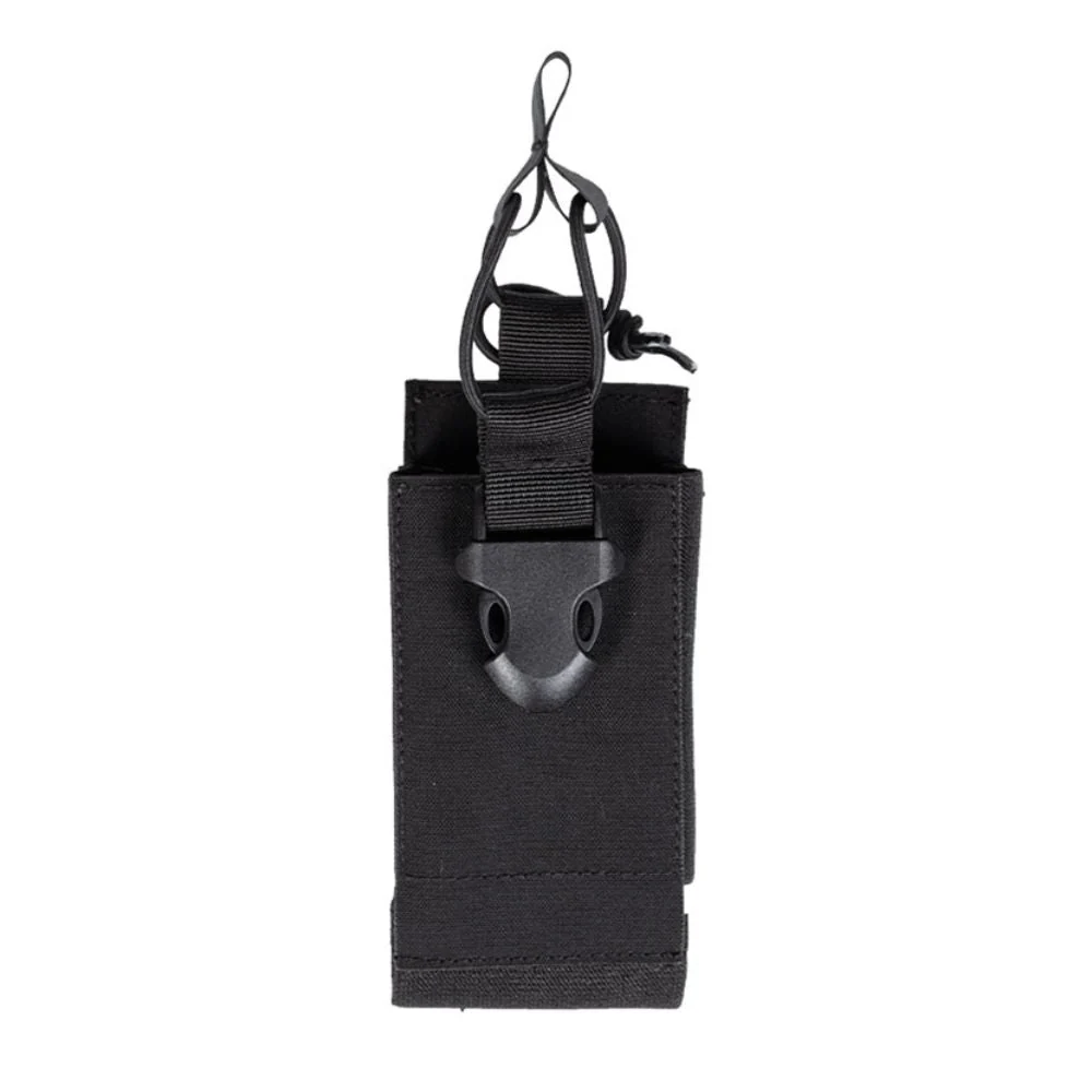Il associe un Tissu Oxford résistant à des renforts en Hypalon® (CSM) pour garantir fiabilité et longévité. Les passants MOLLE offrent une fixation stable sur un plate carrier, une ceinture ou une pouch compatible, et maintiennent une configuration épurée qui préserve la mobilité. La sangle élastique réglable, couplée à une boucle à déclenchement rapide, maintient la radio en place et autorise une manipulation efficace d’une seule main.