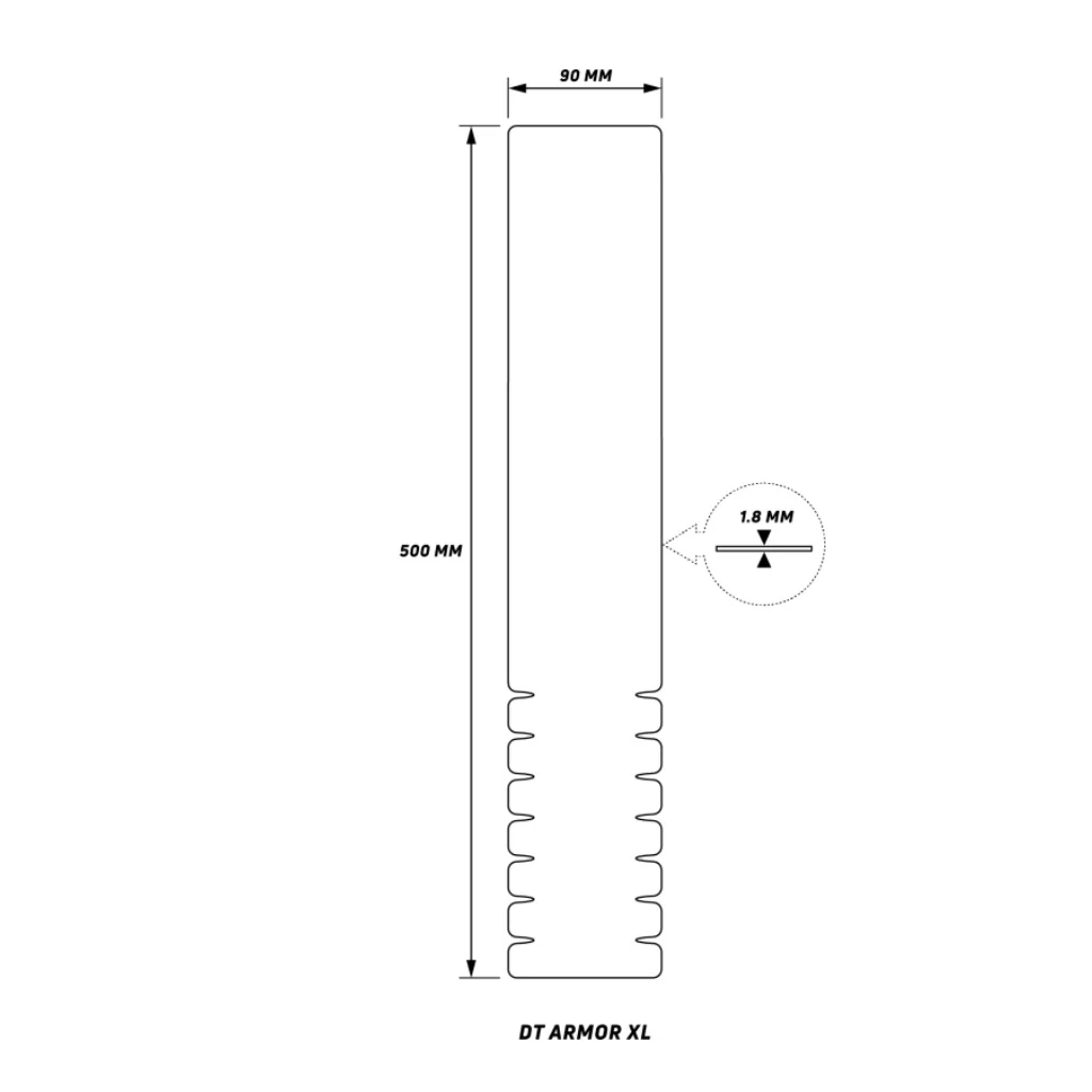 La protection DT Armor est disponible en deux tailles, L et XL, qui correspondent aux dimensions suivantes :