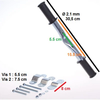 Le repose pieds s’adapte sur la plus part des cadres de vélo, grâce à 3 fixations de tailles différentes (voir les dimensions et le système d’attache en détail sur les photos).