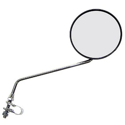 Une pastille convexe additionnelle peut être ajoutée à ce rétroviseur pour une meilleure visibilité. Elle donnera une vue plus large de la route derrière le cycliste. Le rétroviseur peut s’installer à droite ou à gauche du guidon du vélo. La cuve du miroir est de couleur noire en plastique. Le reste du rétroviseur de vélo est en métal argenté. La bague de fixation est en acier.