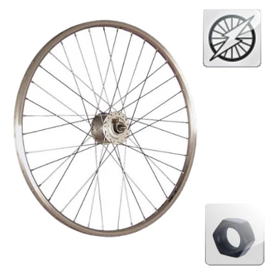 Roue 650 avant de vélo avec dynamo dans le moyeu Cette roue avant de vélo est faite pour équiper un vélo dont les roues ont un diamètre de 650 mm ou 584 ETRTO. Elle est faite d’une jante à simple paroi Rigida 584 avec des rayons en inox. Sur cette roue est montée une dynamo […]