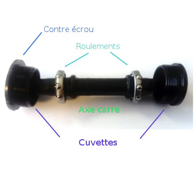 Boitier de pédalier avec axe à emmanchement carré