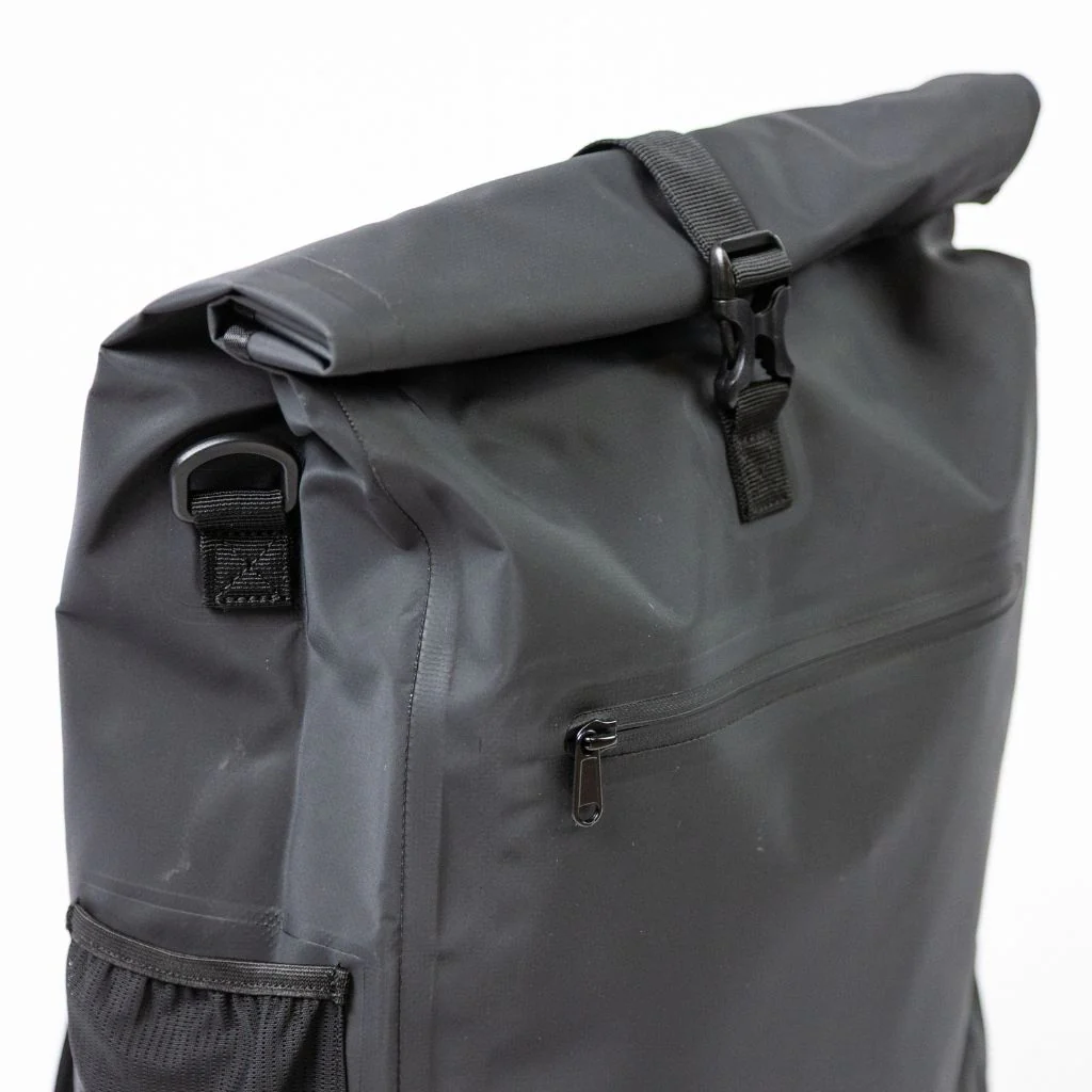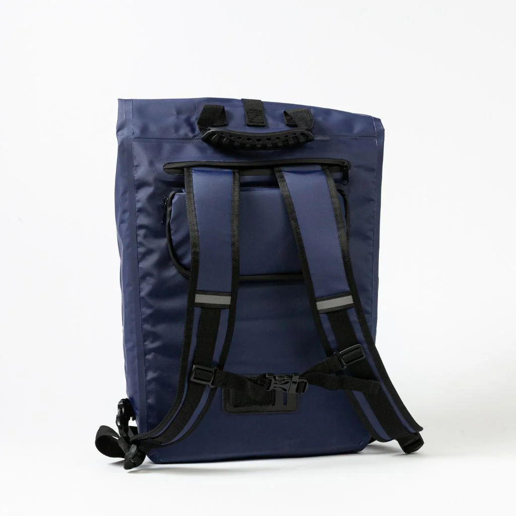 Ce sac convertible en PVC est complètement imperméable (indice IPX6, forte pluie) ; à la fois adaptable et résistant, il sait suivre avec fluidité les aléas du quotidien. Grâce à sa fermeture enroulée (velcro et boucle), son volume est modulable. A l’intérieur, vous trouverez une pochette rembourrée pour ordinateur (15”). A l’extérieur, une pochette frontale zippée et une poche latérale facilitent les gestes les plus fréquents, en mettant à portée de main une gourde, l’antivol ou votre téléphone. Entre ces éléments d’organisation et son design efficace, sans encombrement quel que soit le mode d’usage, ce sac convertible vous évite de devoir sortir toutes vos affaires, les transvaser et les réorganiser plusieurs fois par jour. Sa structure rigide facilite cette maniabilité.
