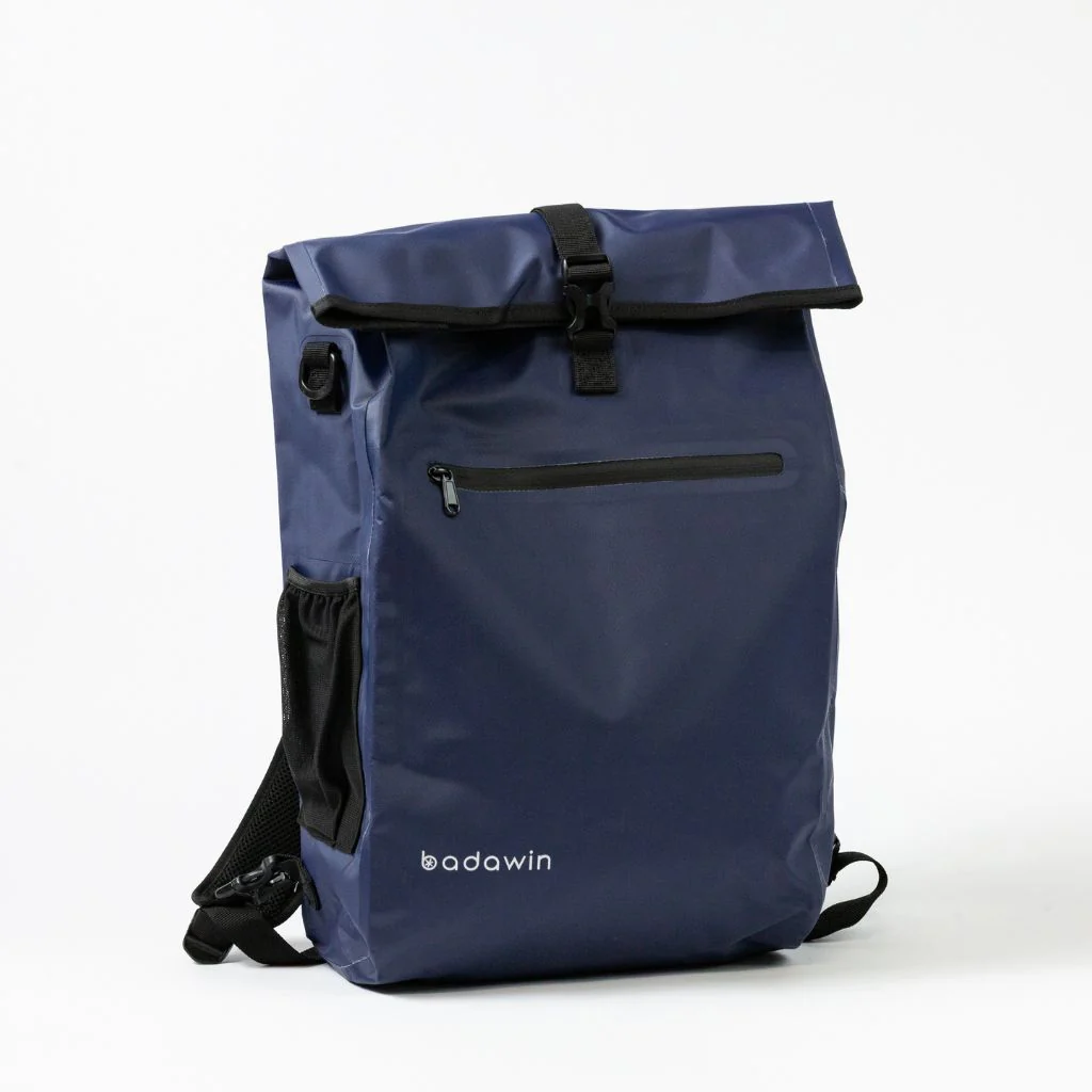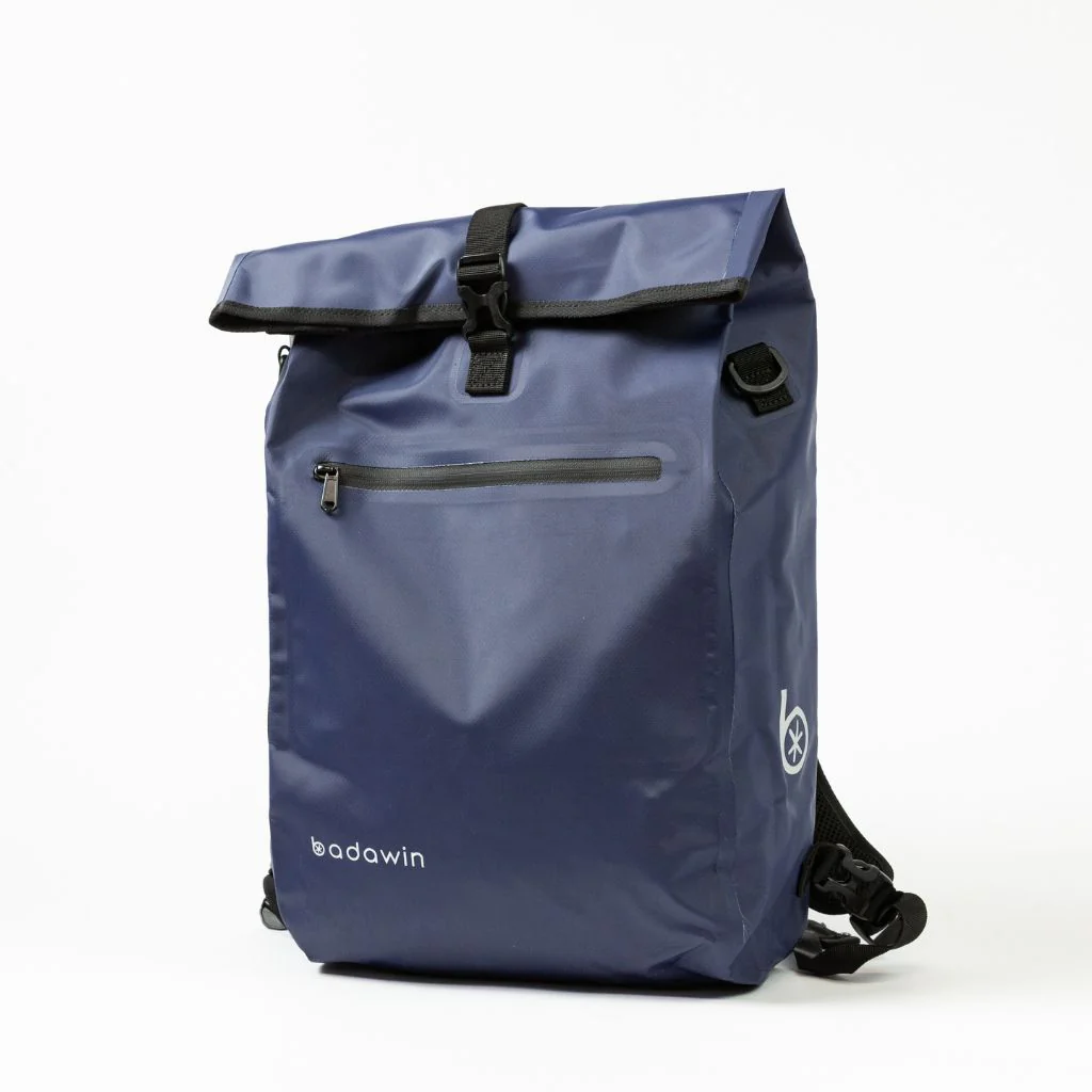 Badawin propose aussi le sac convertible Anna, une variation de design et coloris avec quelques fonctionnalités supplémentaires : une imperméabilité supérieure (IPX7), une meilleure réparabilité, une fermeture éclair et roll-top, un compartiment pour ordinateurs de 17″ et une structure souple.