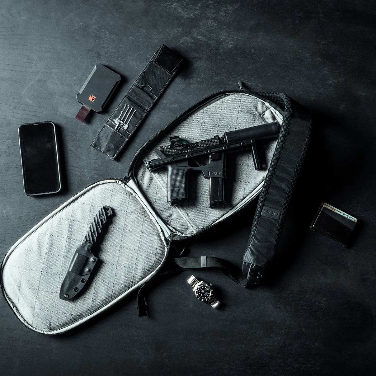 La configuration entièrement ambidextre et les trois points d’attache de la bandoulière offrent un port ajusté à chaque morphologie ou mode d’opération, ce qui améliore la précision des gestes et la sécurité en déplacement. Le panneau arrière en U inversé donne un accès discret à l’équipement, et le passage dédié aux câbles ou aux systèmes d’hydratation maintient la connectivité et l’autonomie.
