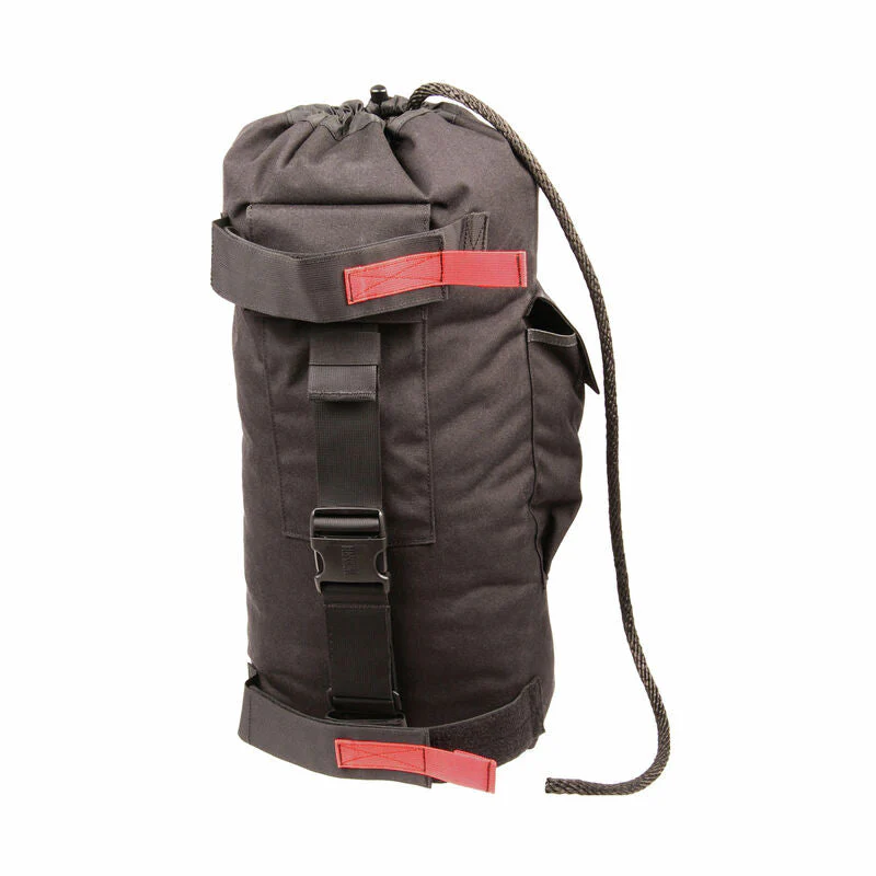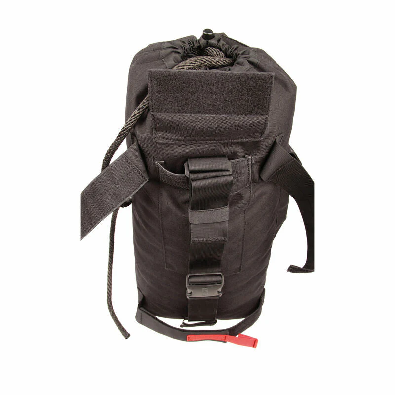Pensé pour les opérations sur terrain varié, il accueille jusqu’à 60 m de corde (non incluse) dans un compartiment principal à fermeture par cordon, complété par une poche dédiée à l’excédent de drisse pour maintenir la ligne nette et prête à l’emploi. Une poche extérieure permet de regrouper mousquetons et petits équipements afin de gagner en efficacité lors des phases d’ancrage et de progression.