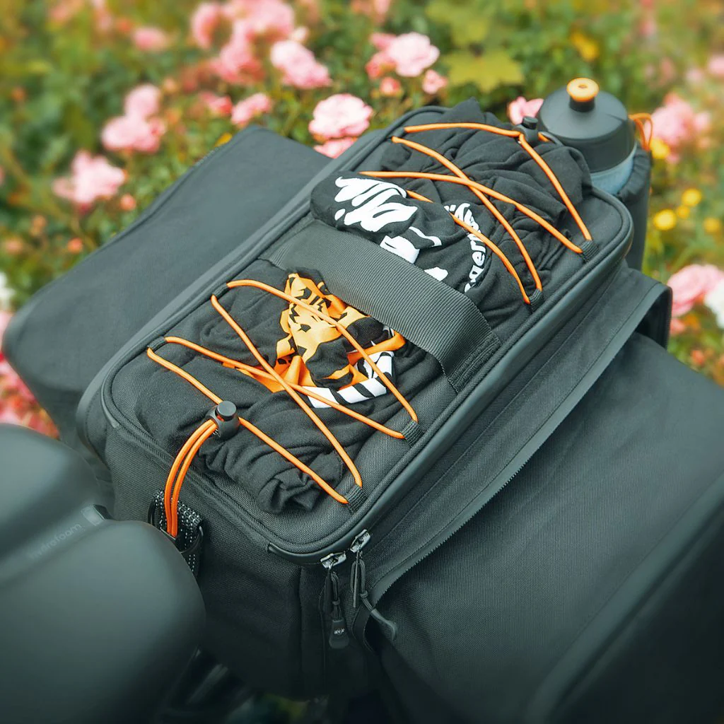 Ce sac sur porte-bagages d’un volume de 8 L se compose de quatre éléments principaux : le compartiment central, le filet de rangement sur le dessus, la poche pour bidon et les sacoches latérales rétractables (2×9 L). Ces quatre types d’espaces de rangement vous permettent d’organiser vos affaires et d’avoir le nécessaire à portée de main, avec un équipement compact qui n’encombre pas votre vélo et qui reste bien en place. Le porte-bidon est particulièrement appréciable pour un accès pratique à l’eau.