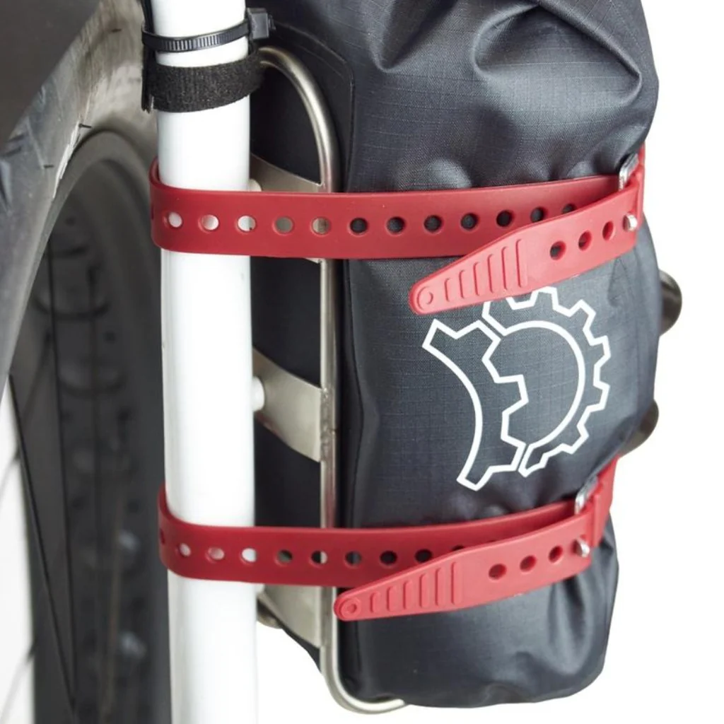 La Polecat dispose de 3 Grandes boucles espacées pour fixer le sac à l’aide de sangles (non fournies avec la sacoche). Si vous avez besoin de sangles, retrouvez les Fixplus ou les Sea to Summit. Cette sacoche est très polyvalente, car elle est compatible avec n’importe quel cargo cage. Dans certaines configurations, la sacoche peut aussi se fixer le long du tube diagonal comme montré dans la vidéo suivante :