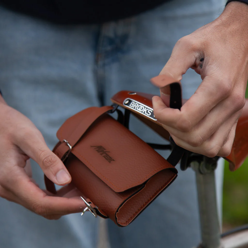 Petite sacoche selle vélo marron imitation cuir