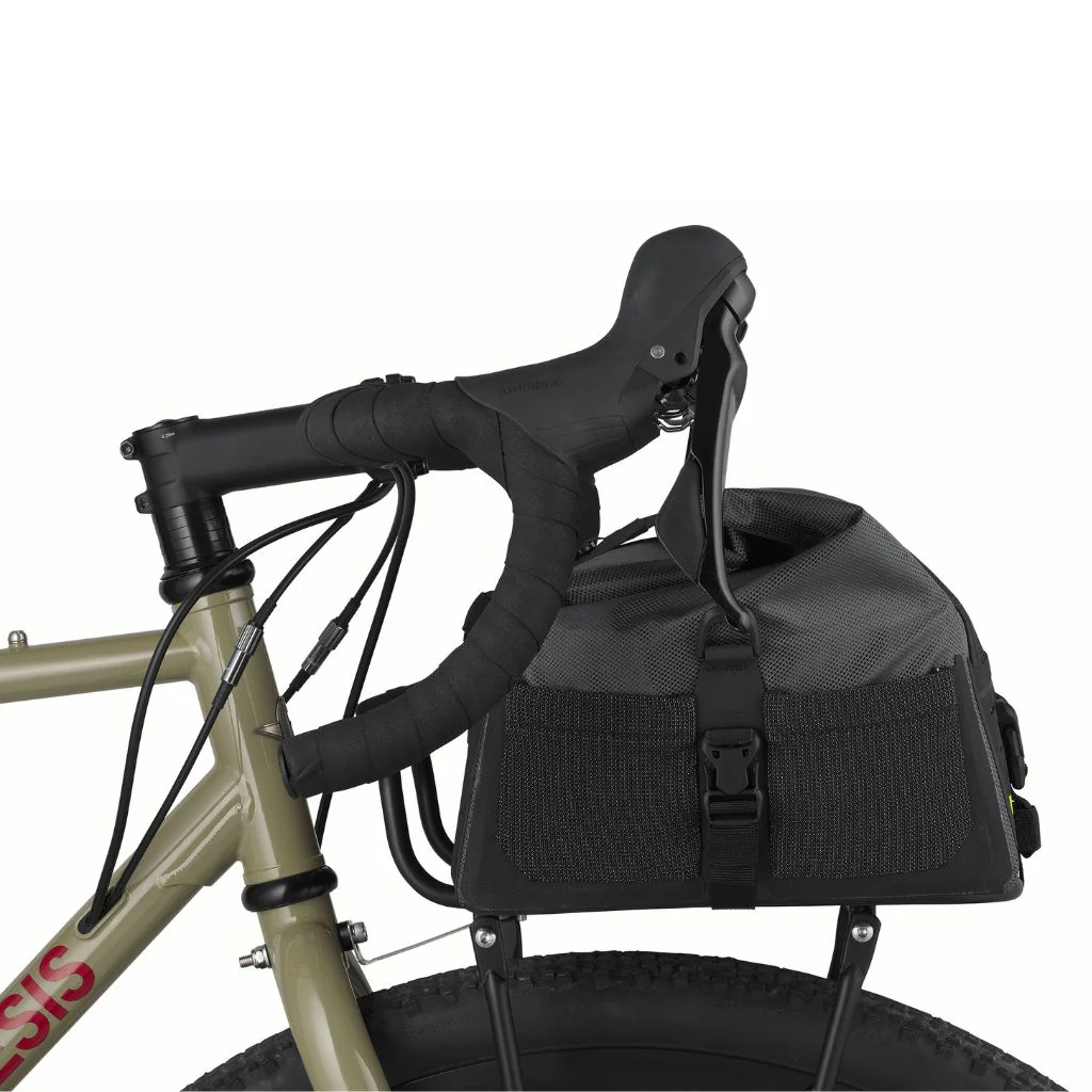 La sacoche Expedition Front Rack Pack est spécifiquement conçue pour être fixée sur un porte-bagages avant à plateforme ou à double rails. Grâce à ses sangles renforcées et à ses crochets latéraux, elle offre une excellente stabilité, même sur les terrains accidentés. Ce positionnement bas optimise la répartition du poids à l’avant du vélo, contribuant à un meilleur équilibre de la charge.