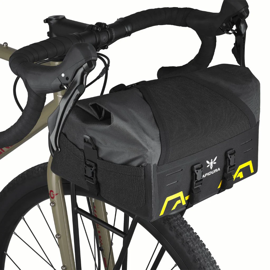 Faisant exception à sa gamme bikepacking « rackless » emblématique, Apidura, marque pionnière du bikepacking, a conçu cette sacoche Expedition Front Rack Pack pour porte-bagage avant de type plateforme cargo. Cette configuration est de plus en plus populaire comme alternative à une sacoche de guidon, car elle offre plus de capacité et de flexibilité pour ceux prêts à sacrifier un peu de poids pour plus de confort. Le bikepacking ce n’est pas que les courses d’ultra !