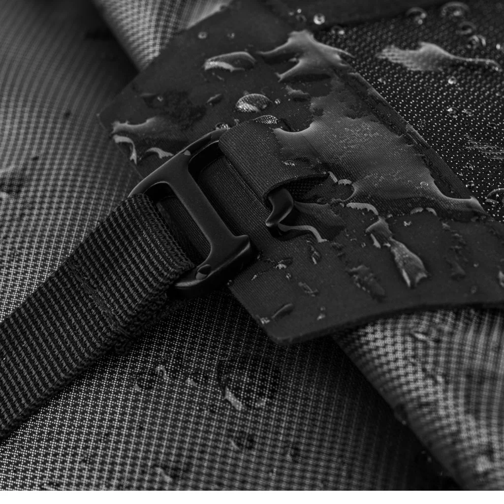 Son système de fermeture par enroulement (roll-top) renforce encore cette barrière contre les éléments, tout en permettant une compression efficace du volume grâce au panneau de compression intégré sur le dessus. En supprimant les zips fragiles, Apidura mise sur la longévité.
