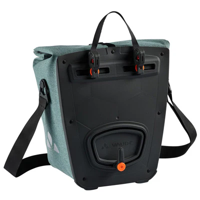 Cette jolie sacoche Vaude Recyclée se fixe sur le porte-bagages arrière facilement et de façon amovible grâce à la fixation Quick Mount Release 2.0 (QMR). Ce système de fixation ingénieux permet une adaptabilité sur de nombreux porte-bagages. L’écart entre les crochets du haut peut s’allonger ou se resserrer selon la longueur de votre porte-bagages. Le crochet du bas, quant à lui, pivote à 360° et permet de sécuriser la sacoche et empêcher qu’elle ne batte avec le vent. Couplé à cela, le dos rigide Hard Back protège la sacoche de l’usure, des chocs et des frictions. Des supports antidérapants protègent les bords.