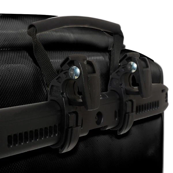 Le système de fixation Quick-Lock 2.1 par crochets autobloquants vous permet d’accrocher à une seule main vos sacoches et garantit une bonne stabilité sur les portes bagages allant jusqu’à un diamètre de tube de 16 mm (des pièces réductrices de 8mm et de 10 et12 mm sont inclus pour les tubes plus fins). L’écartement entre les crochets supérieurs est réglable de 53 à 149 mm.