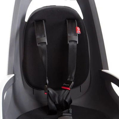 Gage de confort, le siège Caress mise aussi sur une sécurité optimale. Un harnais de sécurité en 5 points maintient bien l’enfant dans son siège. Une boucle sur la poitrine ne permet pas à l’enfant de l’ouvrir seul mais se ferme à une seule main. Des courroies de sécurité maintiennent le pied de l’enfant sur les cale-pieds. Un réflecteur permet d’assurer votre visibilité arrière.
