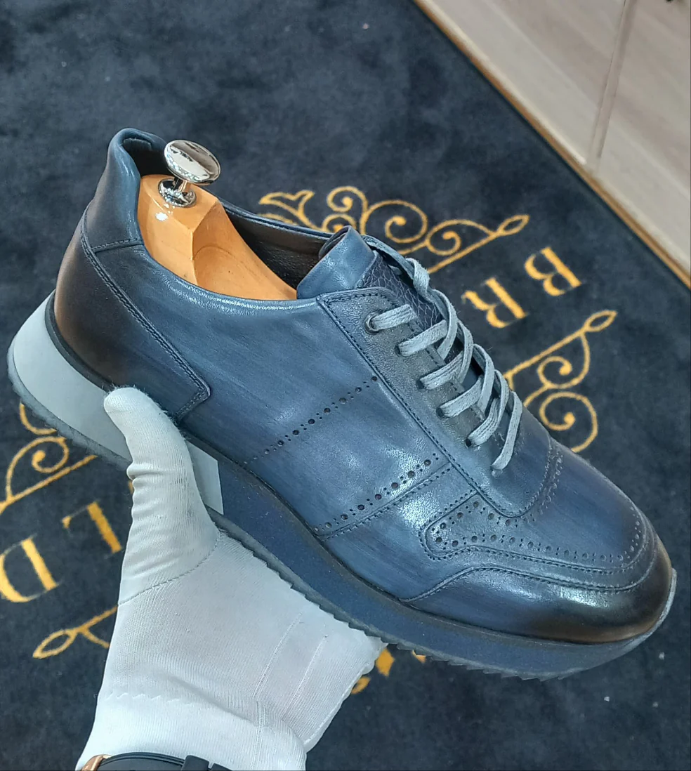 Sneakers homme cuir Navy Bleu Patiné – Jacob
