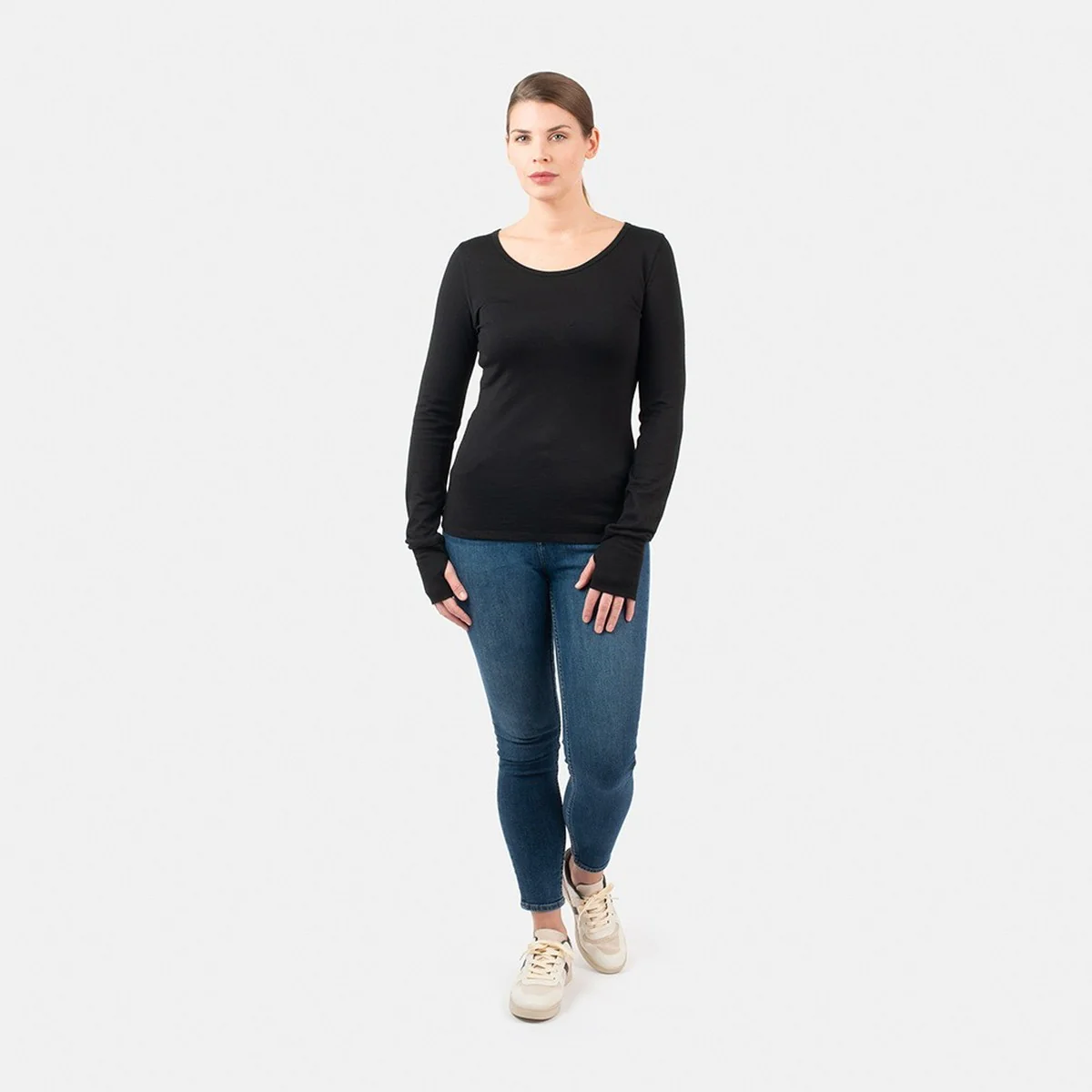 Décliné dans un noir scandinave, ce sous-vêtement manches longues s’intègre facilement dans une tenue de travail ou de ville.