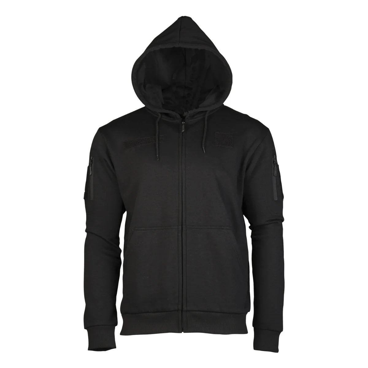 Le mélange 60% coton / 40% polyester offre un équilibre entre confort et résistance. La capuche intégrée et la masse de 770 g ajoutent une protection mesurée et une tenue stable sans gêner la précision des gestes. La version noire sans zip central optimise le port sous une veste ou avec un plate carrier.
