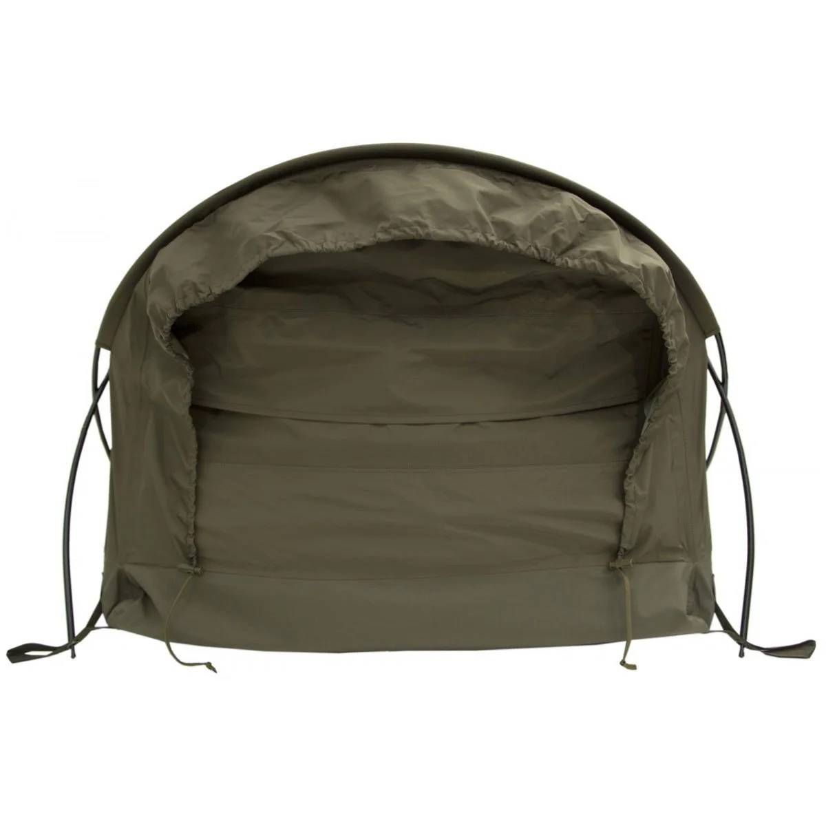 L’ouverture en L facilite l’entrée et la sortie. La moustiquaire intégrée optimise la ventilation et protège des insectes. Un léger dôme en tête crée un volume utile pour l’observation et la manipulation d’équipement sans compromettre la compacité, tandis qu’un tunnel de l’épaule au pied casse les lignes droites et améliore la gestion de la signature visuelle. Dimensions 240 x 104 x 75 cm, masse 1750 g : l’ensemble se déploie et se replie rapidement, soutient la performance logistique et la continuité de la mission face aux intempéries.