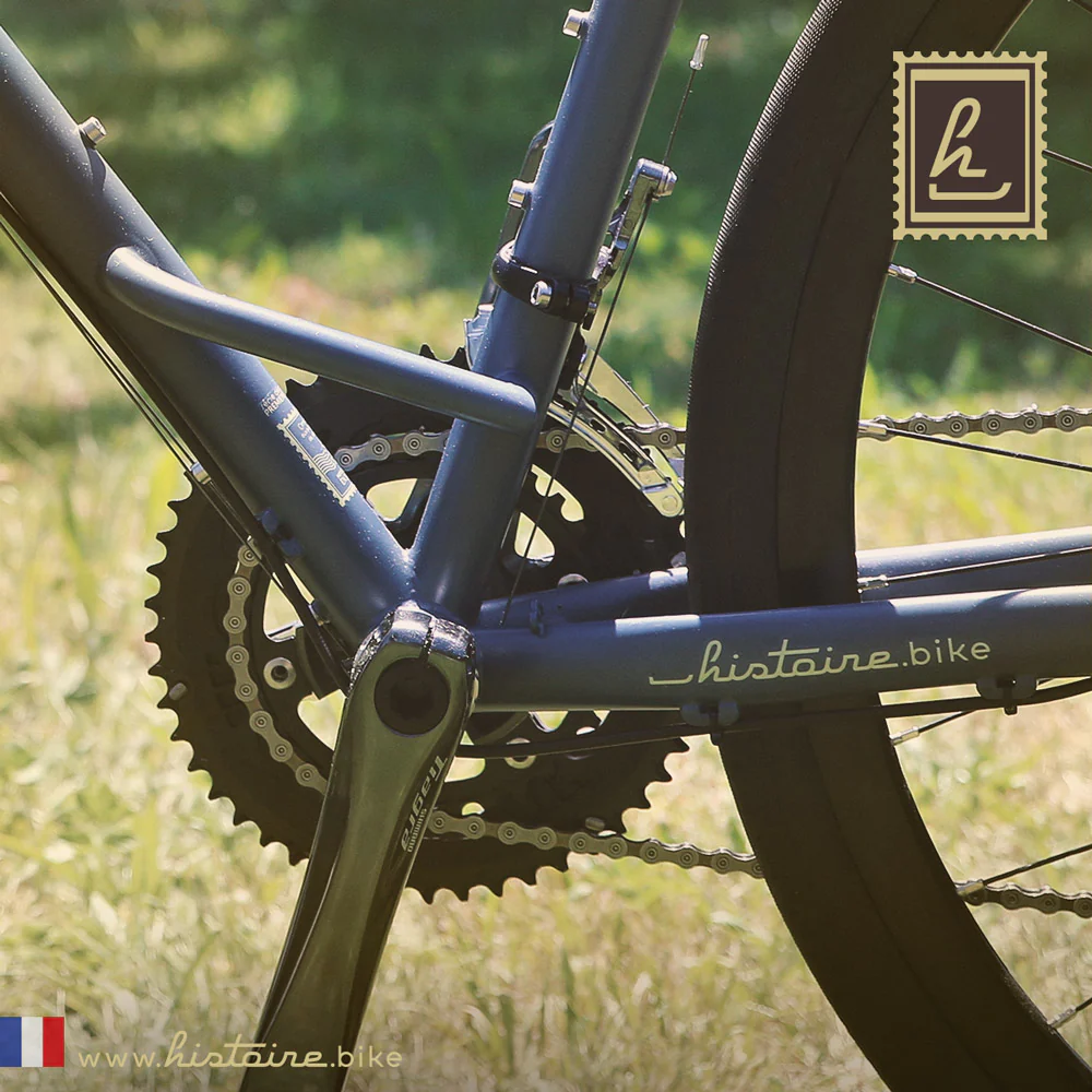 Histoire Bike s’engage à rendre le cyclotourisme et le bikepacking accessible à toutes et à tous. Tous les vélos sont assemblés en France avec des cadres fabriqués en Europe, garantissant qualité et fiabilité. Découvrez le Gravel RTT classique Histoire Bike 28″ adapté au cyclotourisme léger et au bikepacking.