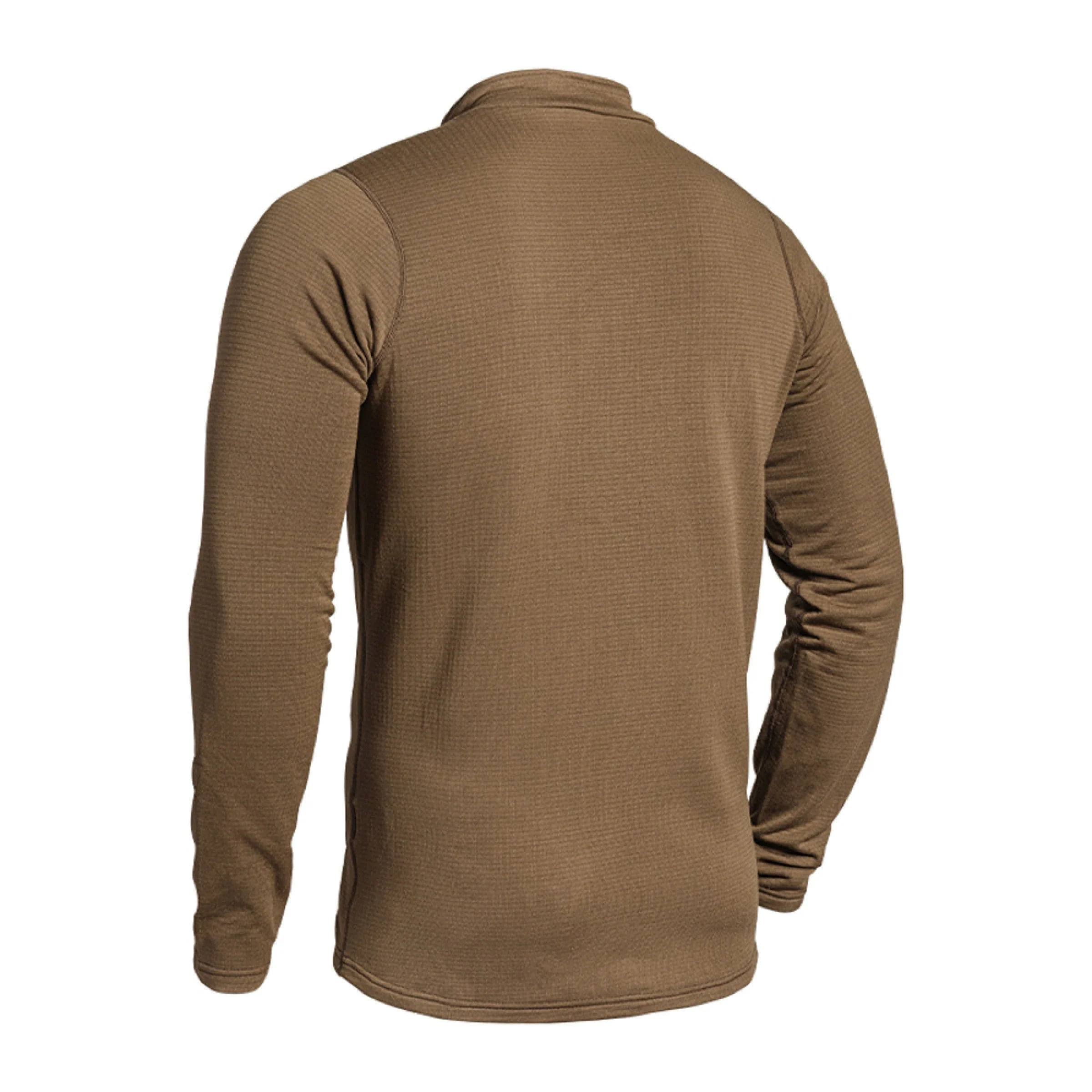 Le col montant et l’ouverture zippée facilitent l’ajustement thermique. La coupe proche du corps travaille avec les autres équipements, s’intègre sous un plate carrier, reste compatible avec un holster et préserve l’accès aux pouch. Conçue pour un environnement froid et sec, cette pièce n’est pas imperméable et se porte idéalement en seconde couche sous une barrière externe lorsque la météo se dégrade.