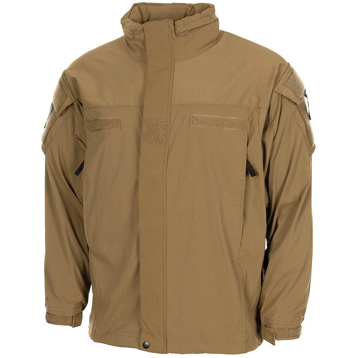 La fermeture frontale zippée est protégée par un rabat muni de Velcro et d’un bouton-pression pour une tenue fiable face au vent. La capuche intégrée, réglable par cordon élastique avec bloque-cordon et dotée d’un patch Velcro arrière, optimise l’ajustement pour sécuriser la vision périphérique et maintenir l’efficacité en mission.