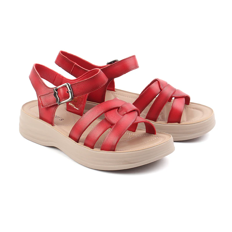 Chaussures Femme Sandales en Cuir, Couleur Rouge / N033-73 / BEL CHOU’S
